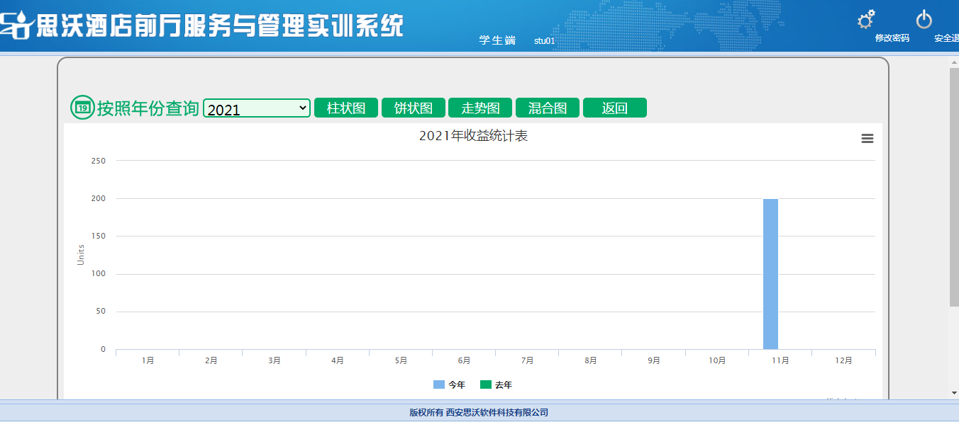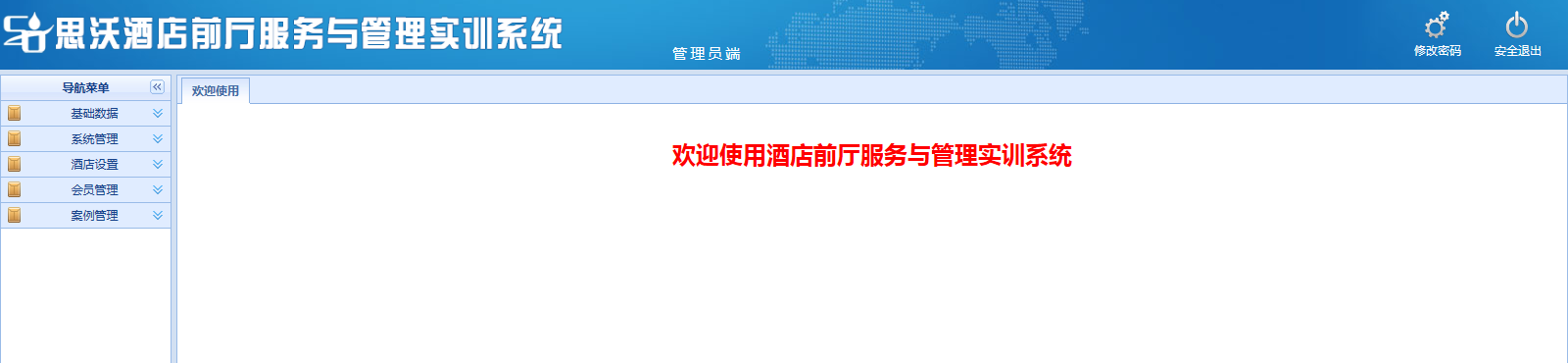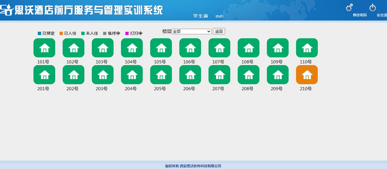思沃(wo)酒(jiu)(jiu)店(dian)前廳(ting)服務與管(guan)理(li)模(mo)擬實(shi)(shi)訓(xun)(xun)平(ping)臺系統以(yi)學(xue)生酒(jiu)(jiu)店(dian)前廳(ting)工(gong)作(zuo)(zuo)崗位任(ren)務為(wei)基礎,以(yi)案例動畫(hua)結合的(de)(de)模(mo)式開展情景(jing)模(mo)擬實(shi)(shi)訓(xun)(xun),學(xue)生可在(zai)該教學(xue)軟(ruan)件(jian)設置的(de)(de)虛擬酒(jiu)(jiu)店(dian)環境(jing)中,完(wan)成預定(ding)、入(ru)住(zhu)辦理(li)、續住(zhu)、退房、換房、會(hui)員管(guan)理(li)、故障(zhang)報(bao)修、投訴處理(li)、黑名單等相關案例任(ren)務的(de)(de)操作(zuo)(zuo)。該教學(xue)平(ping)臺軟(ruan)件(jian)可以(yi)逼真(zhen)的(de)(de)體驗實(shi)(shi)際酒(jiu)(jiu)店(dian)前廳(ting)工(gong)作(zuo)(zuo)的(de)(de)過程。本公司為(wei)了更好滿足高校(xiao)的(de)(de)教學(xue)需求,也(ye)會(hui)根據高校(xiao)的(de)(de)需求提供酒(jiu)(jiu)店(dian)管(guan)理(li)實(shi)(shi)訓(xun)(xun)室解決方案,