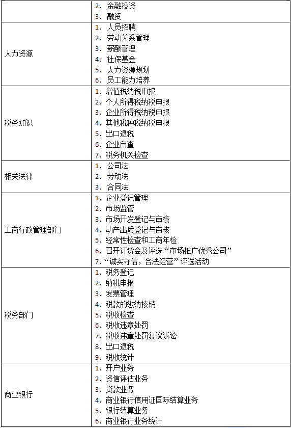 B、含(han)蓋(gai)專業(ye)廣泛:平臺實現以(yi)崗(gang)位替代專業(ye)的(de)模式,有(you)企(qi)業(ye)管理(li)者(zhe)、銷售、采(cai)購、生產(chan)、人(ren)力資源、財務人(ren)員、投(tou)融資、倉儲(chu)、外貿業(ye)務員、行政辦事人(ren)員等等幾十個崗(gang)位,融合(he)的(de)專業(ye)有(you)企(qi)業(ye)管理(li)、會(hui)計、工商管理(li)、物流、金(jin)融、國際貿易等多個專業(ye)。