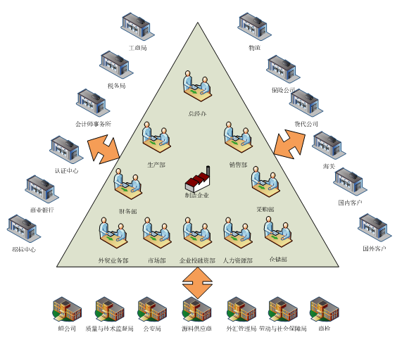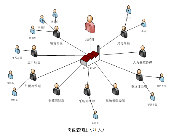 核心系統指的是制造(zao)企業(ye)內部(bu)(bu)經(jing)營和管(guan)理(li)系統,由總經(jing)理(li)辦公室、銷售部(bu)(bu)、生產部(bu)(bu)、采購部(bu)(bu)、倉儲部(bu)(bu)、外貿部(bu)(bu)、市場部(bu)(bu)、財(cai)務部(bu)(bu)、人(ren)才資(zi)(zi)源部(bu)(bu)、企業(ye)投資(zi)(zi)融資(zi)(zi)部(bu)(bu)等部(bu)(bu)門構成,下設21個崗位,各施(shi)其職,來(lai)完成企業(ye)的運作(zuo)。