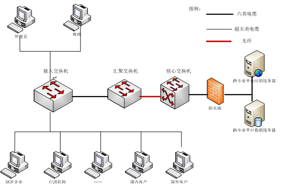 整個網絡設(she)計以(yi)千(qian)兆為主干,百兆到(dao)(dao)桌面(mian)的結(jie)構,匯聚層(ceng)交換(huan)(huan)機通過(guo)千(qian)兆光纖(xian)連接(jie)(jie)到(dao)(dao)核心交換(huan)(huan)機,再通過(guo)千(qian)兆電纜連接(jie)(jie)到(dao)(dao)接(jie)(jie)入層(ceng)交換(huan)(huan)機,這樣的設(she)計結(jie)構具(ju)有層(ceng)次化設(she)計節(jie)約(yue)線路成(cheng)本、保障安全、便于管理、擴展靈(ling)活等特點(dian)。